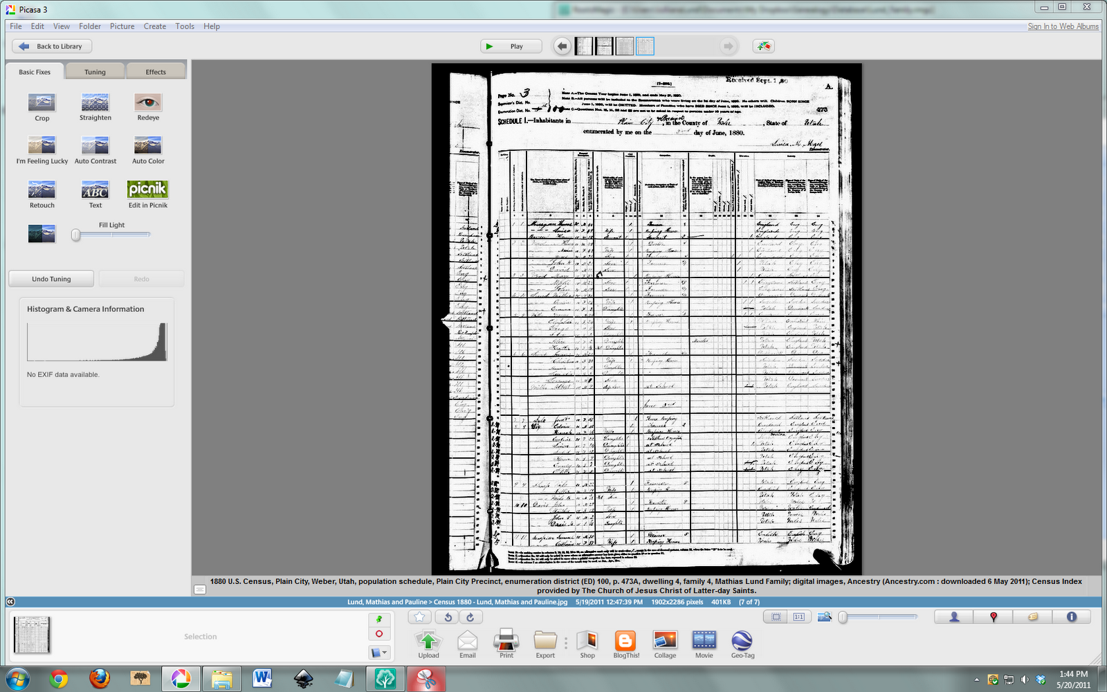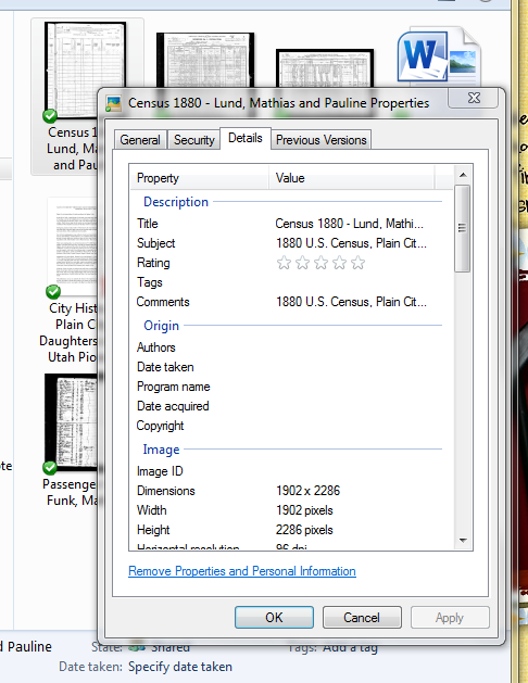 Here’s one of my source files for Troy’s g-g-grandparents Mathias and Pauline Lund. I have a few records for them including census’ and death certificates which are jpg files and a city history which I’ve saved in word and pdf versions.